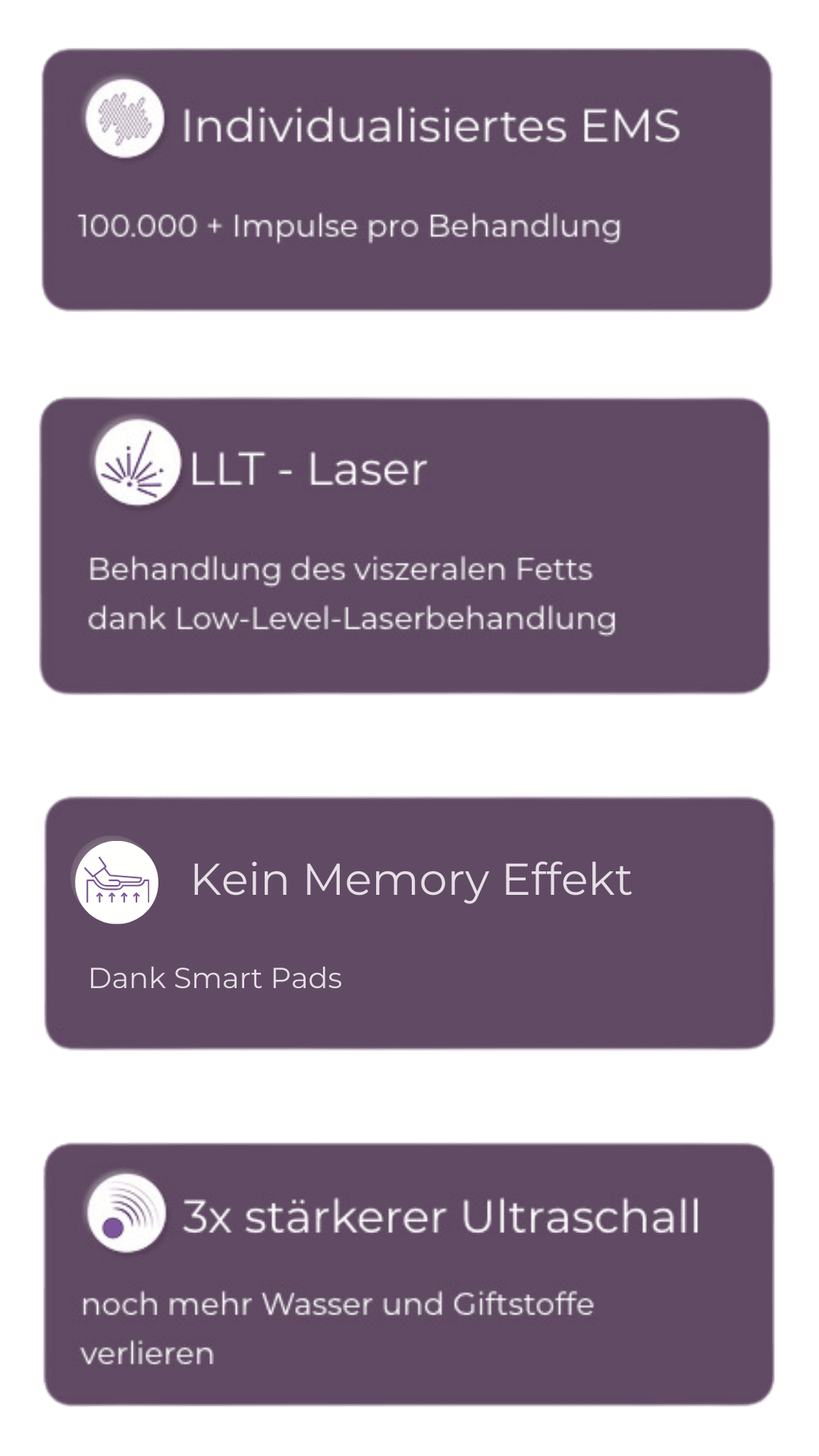 Mittlerweile hatte ich meine 4. Sitzung und bin sehr positiv überrascht. Es purzeln nicht nur die Zentimeter, man bekommt auch seelisch ein sehr gutes Gefühl und der Stoffwechsel wird stark angeregt.
